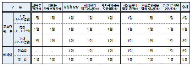 라. 시상규모 : 총 38점 표창 | 총액 1,000만원 상당 부상(수상자 전원 최신형 갤럭시 워치 자급제 지급)