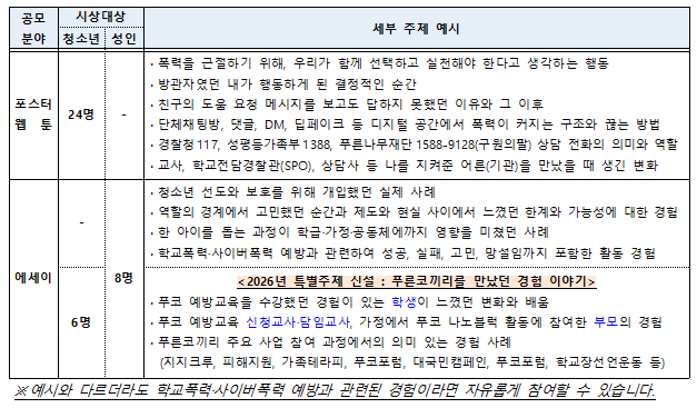 [모집] 제7회 학교폭력·사이버폭력예방 포스터, 웹툰, 에세이 공모전 작품 접수 (~3/31)