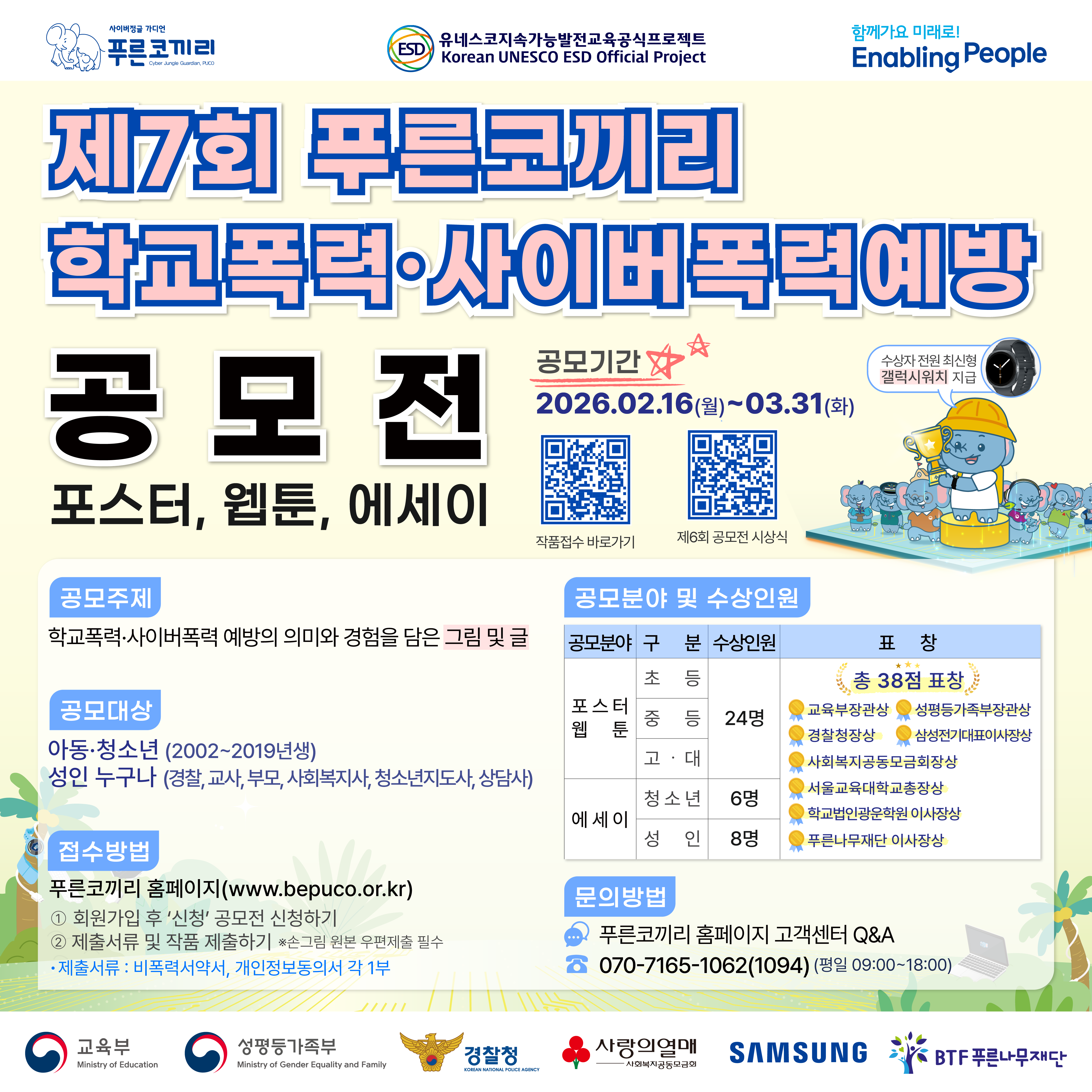 [제7회 푸른코끼리 학교폭력·사이버폭력 예방 포스터, 웹툰, 에세이 공모전]