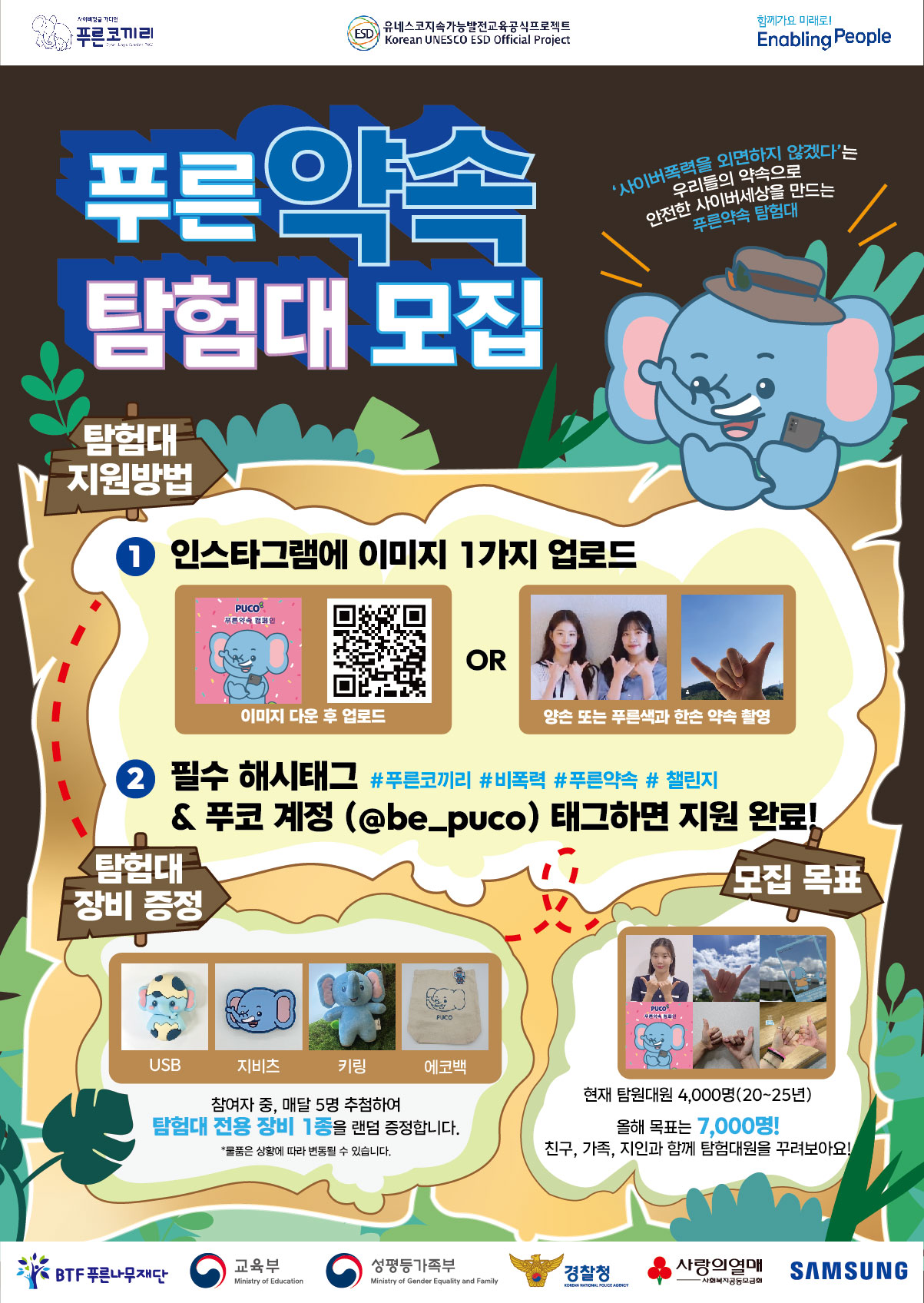 올해 탐원대원 모집 목표는 ⚡7,000명! ⚡ 언제, 어디서나 📱과 🤙만 있다면 탐험대에 함께할 수 있어요. 혼자도 좋고, 가족, 친구, 선생님과 함께도 좋아요! 👨👩👧👦